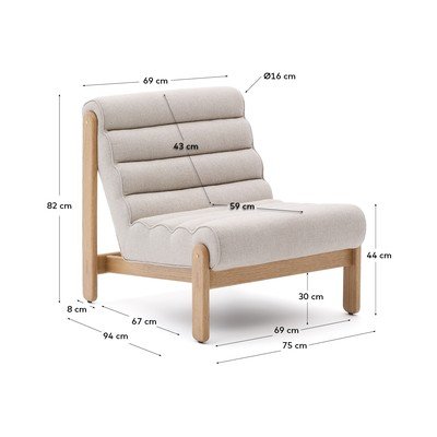 Magira fotelis iš Kave Home. Unikalus dizainas su išskirtiniu „Michelin“ efektu ir tvirta ąžuolo konstrukcija užtikrina ergonomišką ir apgaubiantį sėdėjimą.