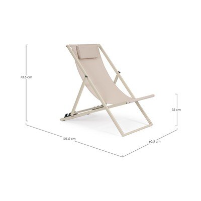 Bizzotto sodo šezlongas Taylor. Jis siūlo tris reguliuojamas padėtis, užtikrinančias maksimalų patogumą ir atsipalaidavimą.