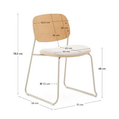 Kave Home valgomojo kėdė Meli. Jos sukraunama konstrukcija puikiai tinka taupyti vietą, o specialios kojelių apsaugos užtikrina, kad grindys bus apsaugotos nuo pažeidimų.
