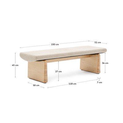 Iš šenilinio audinioMedžio masyvo/paminkštinto audinioSmėlio spalvos/natūralios spalvosPlotis 150 cmGylis 51 cmAukštis 45 cm