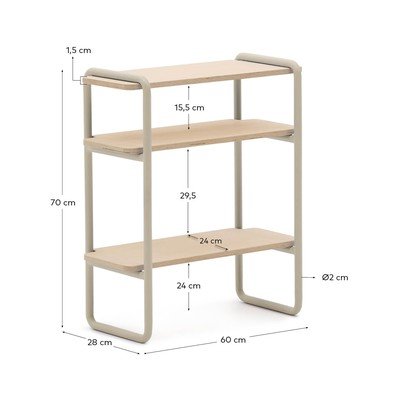 Kave Home vaikiška knygų lentyna Tinn. Ji jungia modernų metalinės konstrukcijos dizainą su natūraliu medžiu ir sukuria žaismingą erdvę vaikų fantazijai.