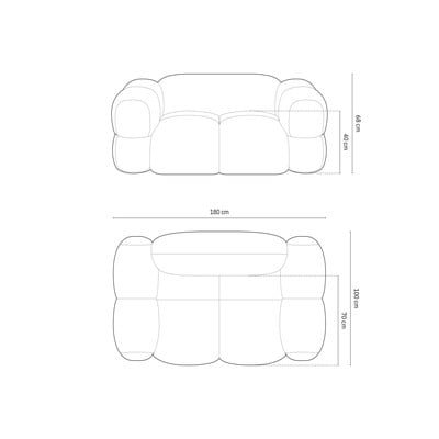 Smėlio spalvos, dvivietė, plotis 180 cm, gylis 100 cm, sėdynės gylis 70 cm