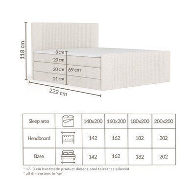 Spyruoklinė lova Bergamo180x200 cm, su sandėliavimo vieta, audiniu dengta, su čiužiniu /su čiužinio užvalkalu, rankų darbo/paprastas surinkimas, smėlio spalvos