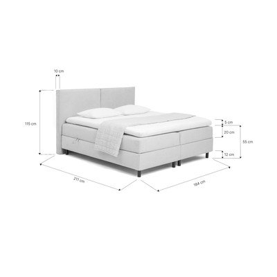 Į boxspring lovą įeina 20 cm kišeninių spyruoklių čiužinys ir 5 cm aukščio PUR putų užvalkalas, kurie kartu užtikrina komfortą, aukštesnį miegamąjį paviršių ir lengvesnį atsikėlimą. Spyruoklės prisitaiko prie kūno ir prailgina visos lovos tarnavimo laiką.