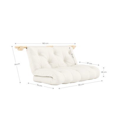 Kėdė turi keturis sieninius laikiklius, kurie tvirtai ją laiko vietoje ir kartu leidžia jai veikti kaip dekoratyvinis kambario elementas. Norėdami atsisėsti, tiesiog perkelkite kėdę į žemesnę padėtį. Jei reikia vietos miegoti, tiesiog išskleiskite čiužinį ant grindų. Laikiklius galima montuoti įvairiuose kambariuose, todėl kėdę galėsite perkelti pagal poreikį.
