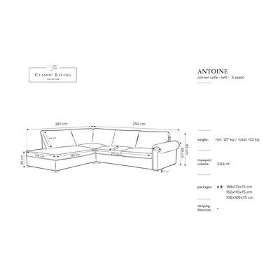 Iš šenilinio audinio, su kairiuoju kampu, baltos spalvos/smėlio spalvos, kito dydžio, plotis 250 cm, sėdynės gylis 66 cm