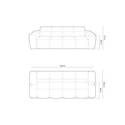 Pilkos spalvos, trivietė, plotis 256 cm, gylis 101 cm, sėdynės gylis 58 cm