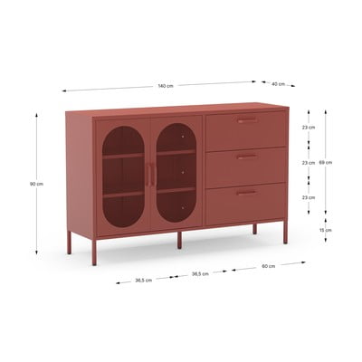Šoninė spintelė raudonos plytų spalvos 140x90 cm Diora – Marckeric