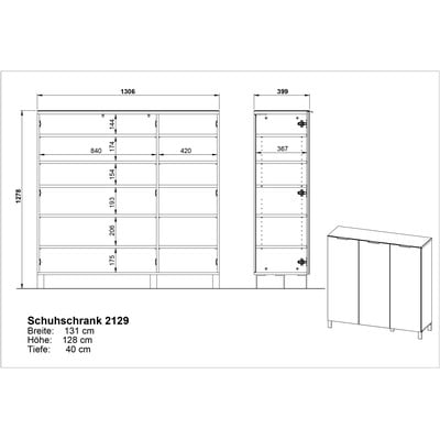 Spintelė batams CedunaIš medžio drožlių plokštės, paviršiaus apdaila: Melaminas/paviršiaus apdaila: stiklas, su blizgiu paviršiumi, pilkos spalvos, porų skaičius 32 , plotis 131 cm, aukštis 128 cm, gylis 40 cm