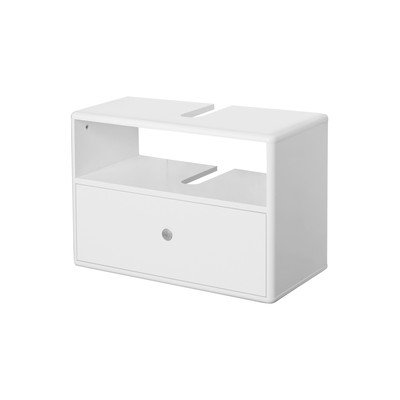 Iš MDF plokštės, paviršiaus apdaila: lakuotas, baltos spalvos, plotis 66 cm, aukštis 45 cm, gylis 34 cm