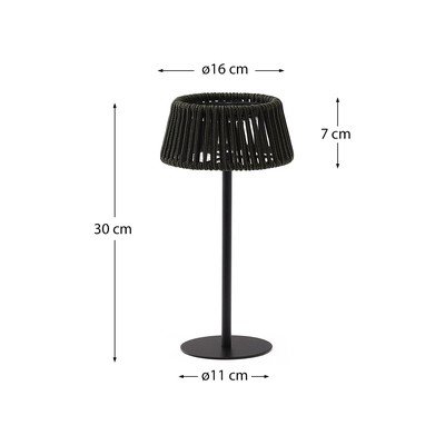 Kave Home Aldet yra nešiojamas saulės energija įkraunamas stalinis šviestuvas, kuris yra stilingas ir praktiškas sprendimas lauko erdvėms apšviesti. Jo gaubtas iš virvelių medžiagos suteikia šviestuvui atsipalaidavusį ir malonų vaizdą, puikiai papildantį bet kokį eksterjerą.