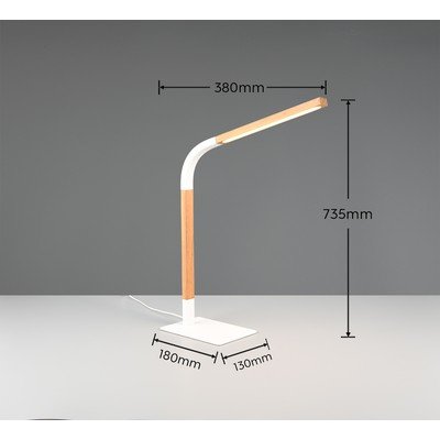Stalinis šviestuvas NorrisLED, su sulankstoma konstrukcija/su pritemdymo funkcija, su mediniu gaubtu, iš medžio/iš metalo, su kištuku, baltos spalvos/natūralios spalvos, aukštis 73,5 cm