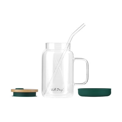 Taip pat pridedamas elegantiškas stiklinis šiaudelis - dėl jo trapumo rekomenduojame elgtis atsargiai. Stiklinė pagaminta iš patvaraus borosilikatinio stiklo ir gerai išlaiko stabilumą dėl plastikinio pagrindo.