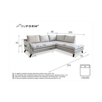 Kampinė sofa Charming CharlieIš šenilinio audinio, sulankstoma, su dešiniuoju kampu/„L“ formos, pilkos spalvos, keturvietė, plotis 234 cm, gylis 200 cm, sėdynės gylis 54 cm