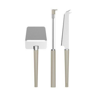 Rinkinyje rasite klasikinį sūrio plėstuvą, kuris idealiai tinka kietiesiems sūriams, o jo platus ašmuo su aštria briauna lengvai pjauna plonus griežinėlius. Taip pat yra sūrio pjaustyklė su vielute, kurios viršuje suformuota nedidelė šakutė, kad būtų galima lengvai sugriebti griežinėlį. Trečiasis įrankis yra sūrio peilis, kuriuo galima pjaustyti ir labai minkštus, ir labai kietus sūrius. Jo aštri briauna eina iki pat galo, kad būtų galima tiksliai pjaustyti, o ant galo esanti būdinga šakutė naudojama sūrio gabalėliams pernešti.