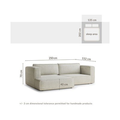 Iš šenilinio audinioSulankstoma/su sandėliavimo vietaSu kairiuoju kampu/su gultuŠviesiai mėlynos spalvosTrivietėPlotis 250 cmGylis 152 cmSėdynės gylis 65 cm