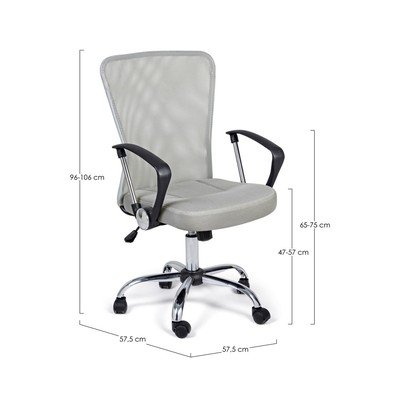 Biuro kėdė BrisbaneIš audinio, su ratukais/reguliuojamo aukščio/su porankiais, šviesiai pilkos spalvos, keliamoji galia 110 kg, sėdynės aukštis 57-57 cm