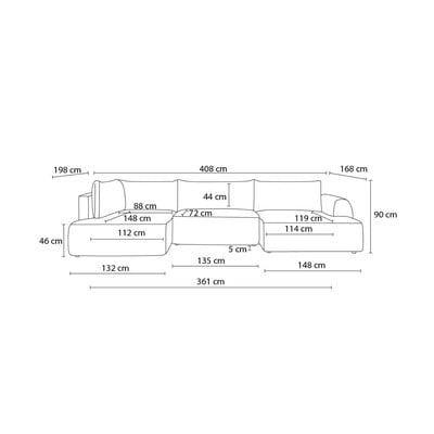 Kampinė sofa LucienIš kordinio velveto, sulankstoma/su sandėliavimo vieta, su kairiuoju kampu/„U“ formos, šviesiai pilkos spalvos, kito dydžio, plotis 408 cm, gylis 198 cm, sėdynės gylis 72 cm