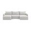 Kampinė sofa KalenaIš velveto, sulankstoma/su sandėliavimo vieta, su dešiniuoju kampu/su gultu, šviesiai pilkos spalvos, trivietė, plotis 244 cm, gylis 149 cm, sėdynės gylis 70 cm
