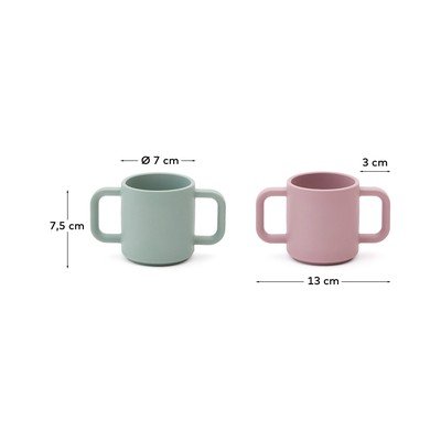 Kiekvienas puodelis turi dvi rankenėles, kurios leidžia mažoms rankytėms lengvai ir saugiai jį suimti.