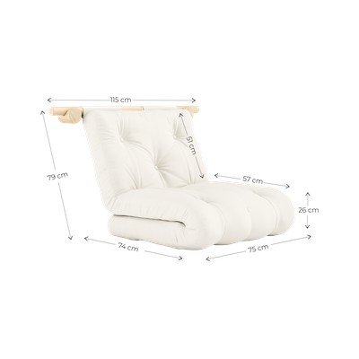 Kėdė turi keturis sieninius laikiklius, kurie tvirtai ją laiko vietoje ir kartu leidžia jai veikti kaip dekoratyvinis kambario elementas. Norėdami atsisėsti, tiesiog perkelkite kėdę į žemesnę padėtį. Jei reikia vietos miegoti, tiesiog išskleiskite čiužinį ant grindų. Laikiklius galima montuoti įvairiuose kambariuose, todėl kėdę galėsite perkelti pagal poreikį.