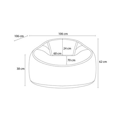 Iš kordinio velveto, tamsiai mėlynos spalvos, plotis 106 cm, gylis 106 cm, svoris 9 kg