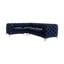 Kampinė sofa ChelseaIš velveto, Chesterfield tipo, su dešiniuoju kampu/„L“ formos, tamsiai mėlynos spalvos, trivietė, plotis 264 cm, gylis 204 cm, sėdynės gylis 67 cm