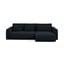 Kampinė sofa KapuaIš velveto, sulankstoma/su sandėliavimo vieta, su kairiuoju kampu/su gultu, tamsiai mėlynos spalvos, keturvietė, plotis 278 cm, gylis 149 cm, sėdynės gylis 68 cm