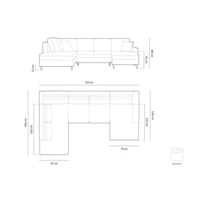 Iš velveto, sulankstoma/su sandėliavimo vieta, su kairiuoju kampu/„U“ formos, tamsiai mėlynos spalvos, kito dydžio, plotis 313 cm