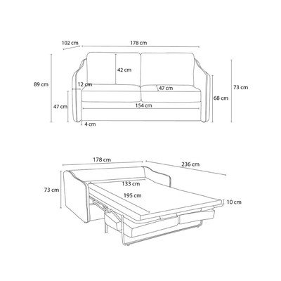 Miegojimui/sulankstomaTamsiai mėlynos spalvosDvivietėPlotis 178 cmGylis 102 cmSėdynės gylis 52 cm