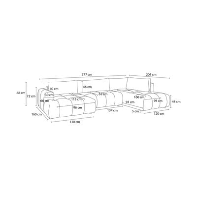 Iš šenilinio audinioSulankstoma/su sandėliavimo vietaSu kairiuoju kampu/„U“ formosTamsiai mėlynos spalvosKito dydžioPlotis 377 cmGylis 204 cmSėdynės gylis 65 cm