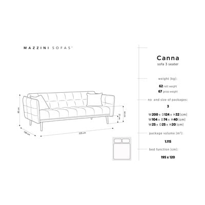 Sofa CannaSulankstoma, antracito spalvos, trivietė, plotis 225 cm, gylis 100 cm, sėdynės gylis 54 cm, … daugiau