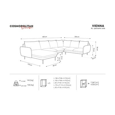 Su dešiniuoju kampu/„U“ formosTamsiai pilkos spalvosKito dydžioPlotis 330 cm