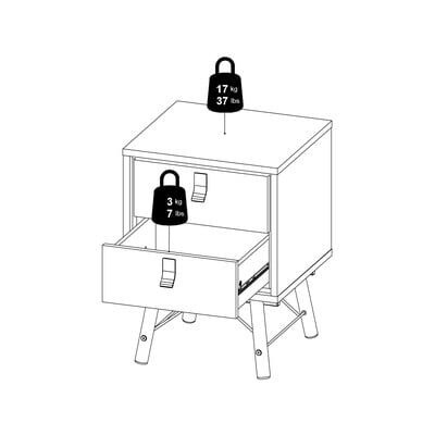 Tvilum naktinis staliukas "Ry" - elegantiškas retro ir modernaus stiliaus derinys. Tamsiai rudos spalvos apdaila su mediniais stalčiais ir juodomis rankenėlėmis suteikia staliukui rafinuotą išvaizdą. Dviejuose erdviuose stalčiuose yra pakankamai vietos daiktams laikyti. Nuožulnios kojos, sujungtos metalinėmis atramomis, užtikrina stabilumą ir suteikia staliukui išskirtinę išvaizdą.