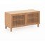 Kave Home spintelė batams Beyla. Ji išsiskiria kruopščiai apgalvotu dizainu su lamelių durimis, kurios sukuria įdomų vizualinį ritmą.