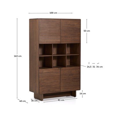 Kave Home spintelė Norlen. Patvari riešutmedžio faneros apdaila užtikrina ilgą tarnavimo laiką ir suteikia gylio bei charakterio.
