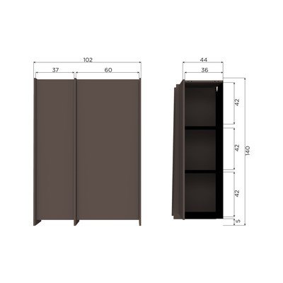 Iš uosio, iš faneros, paviršiaus apdaila: Fanera, tamsiai rudos spalvos, plotis 102 cm, aukštis 140 cm, gylis 44 cm