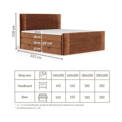 Lovoje yra ne tik patogumo, bet ir praktiškos daiktadėžės, padėsiančios palaikyti tvarką miegamajame. Tvirta konstrukcija ir 240 kg keliamoji galia užtikrina, kad lova yra patvari ir tvirta.