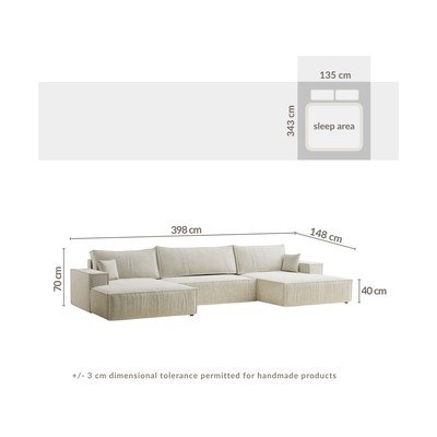 Iš šenilinio audinioSulankstoma/su sandėliavimo vieta„U“ formosTamsiai žalios spalvosKito dydžioPlotis 398 cmGylis 148 cmSėdynės gylis 65 cm