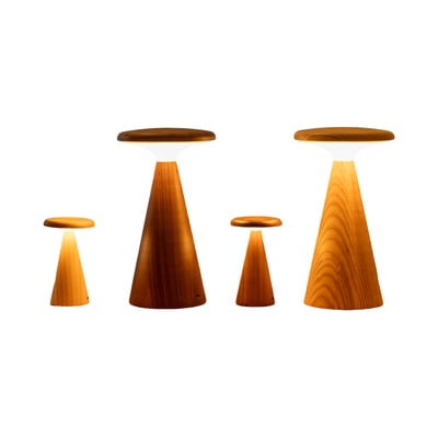 LEDSu mediniu gaubtu/su gaubtu iš akrilo stikloIš medžioUSBTamsios natūralios spalvosAukštis 14 cm
