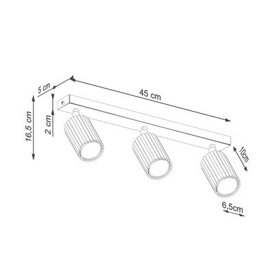 Taškinis šviestuvas Gleam iš Sollux. Trys reguliuojami šviestuvai ant juostos leidžia lanksčiai apšviesti erdvę.