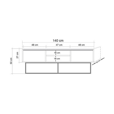 Iš riešutmedžio, iš MDF plokštės, paviršiaus apdaila: Melaminas, rudos spalvos, plotis 140 cm, aukštis 50 cm, gylis 40 cm