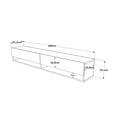 Iš pušiesIš MDF plokštėsPaviršiaus apdaila: MelaminasSu matiniu paviršiumiRaudonos plytų spalvos/natūralios spalvosPlotis 180 cmAukštis 29 cmGylis 32 cm