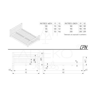 90x200 cm, su lovos grotelėmis, iš pušies masyvo, paviršiaus apdaila: neapdorotas/paviršiaus apdaila: šukuotas, natūralios spalvos