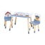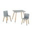Šį vaikiškų baldų komplektą sudaro stalas ir dvi kėdės, skirtos patogiai ir saugiai sėdėti. Dėl kompaktiško dydžio jis puikiai tinka vaiko kambariui ar žaidimų aikštelei. Kėdžių sėdimosios dalies aukštis 28 cm, o bendri matmenys 54 × 26,5 × 26,5 cm. Stalo matmenys - 49 × 60 × 50 cm.
