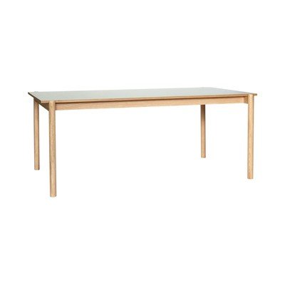 Hübsch valgomojo stalas Oblique. Dėl tvirto linoleumo stalviršio ir ąžuolo masyvo kojų jis idealiai tinka šeimos pietums ir šventiniams susibūrimams.
