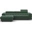 Kampinė sofa FelroIš boucle, reguliuojama/sulankstoma/su sandėliavimo vieta, su kairiuoju kampu/su gultu, žalios spalvos, keturvietė, plotis 285 cm, gylis 181 cm, sėdynės gylis 53 cm