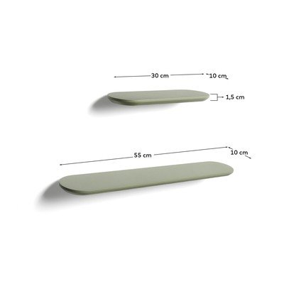 2 vnt.Iš MDF plokštėsPaviršiaus apdaila: spalvotasŽalios spalvosPlotis 55 cmAukštis 1,5 cmGylis 10 cm